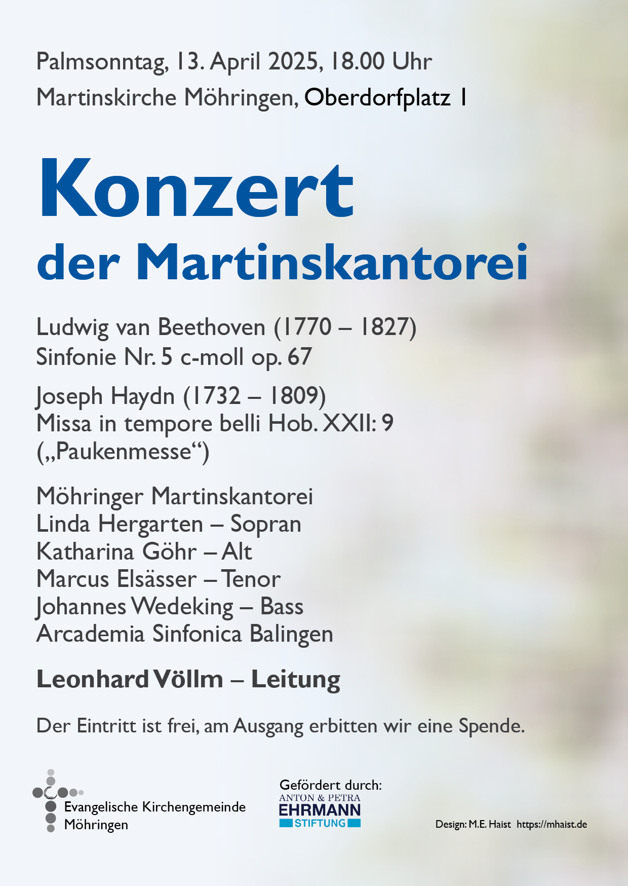 | 13. April 18:00 | ![]() | Martinskirche Oberdorfplatz 1 70567 Stuttgart-Möhringen |