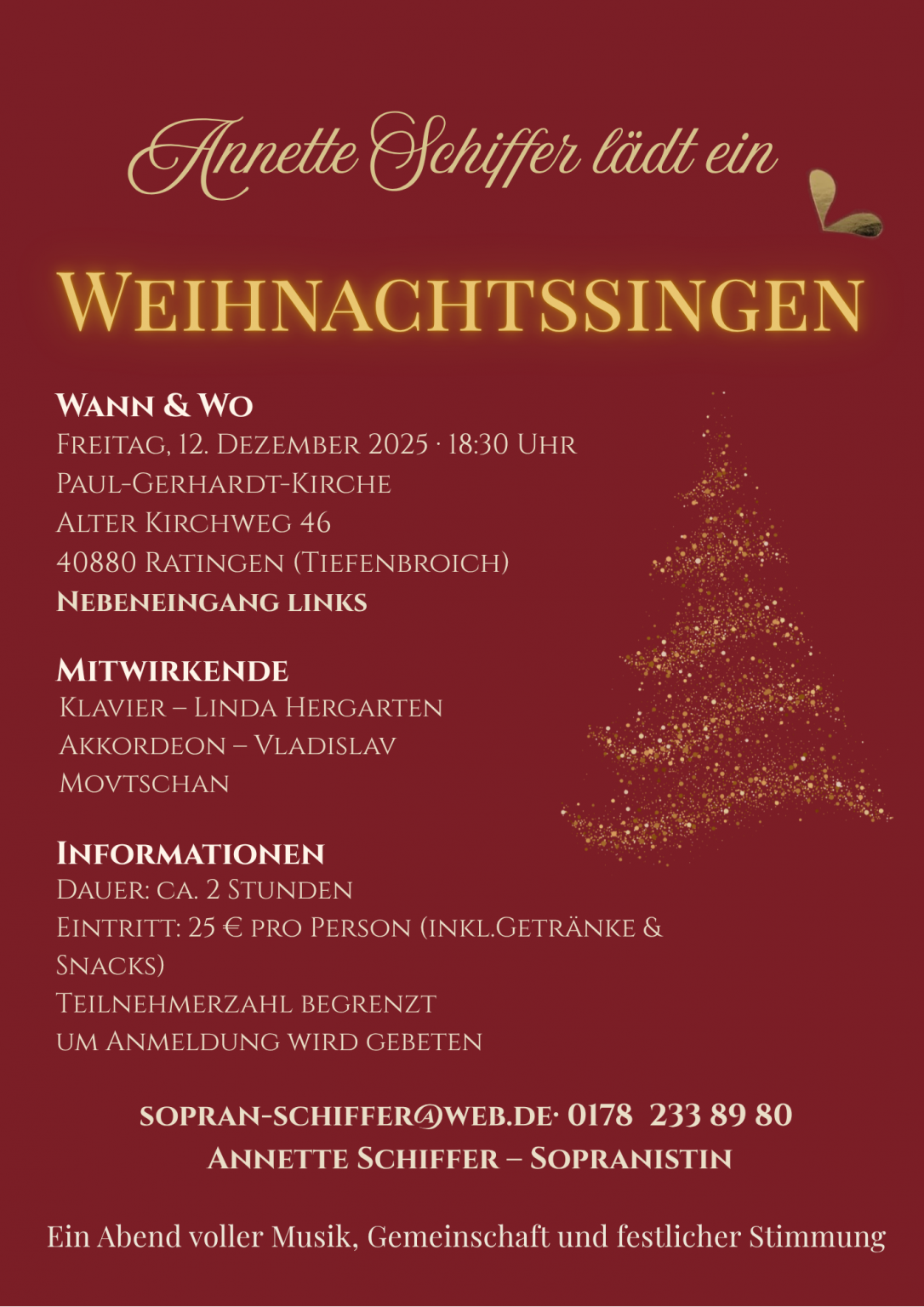 | 12. Dezember 18:30 | ![]() | Paul-Gerhard-Kirche Alter Kirchweg 46 40880Ratingen |